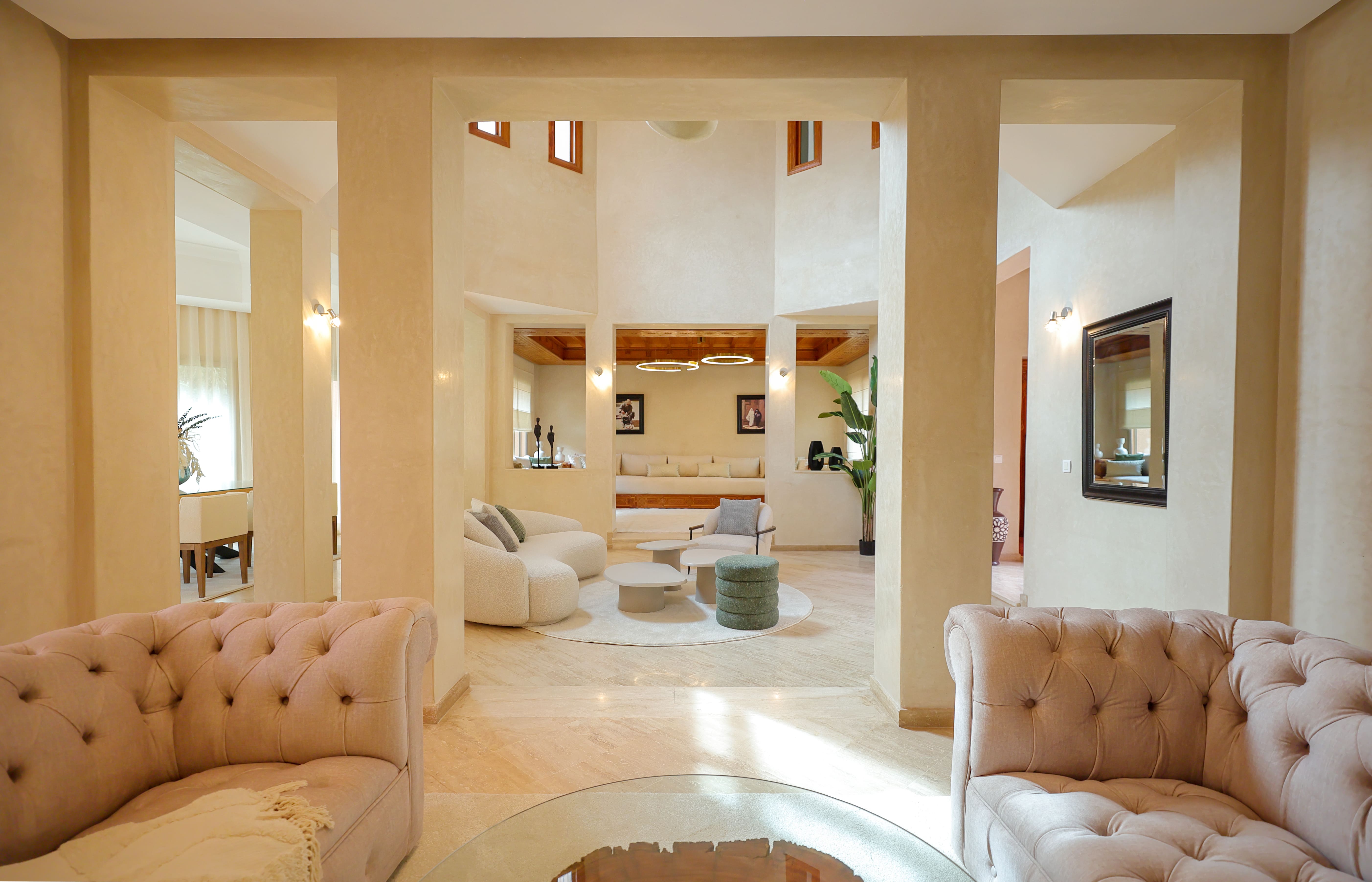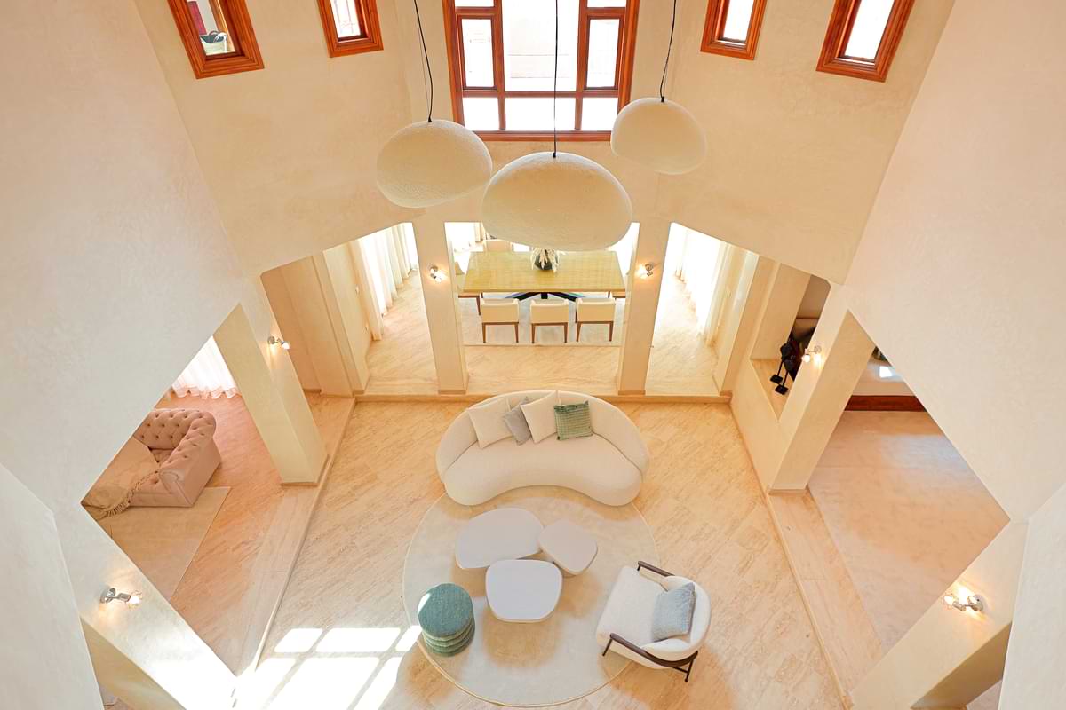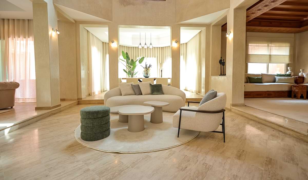 - Matériaux nobles et finitions haut de gamme : Marbre, tadelakt, zellige et moucharabieh décorent chaque villa, reflétant le patrimoine artisanal marocain.