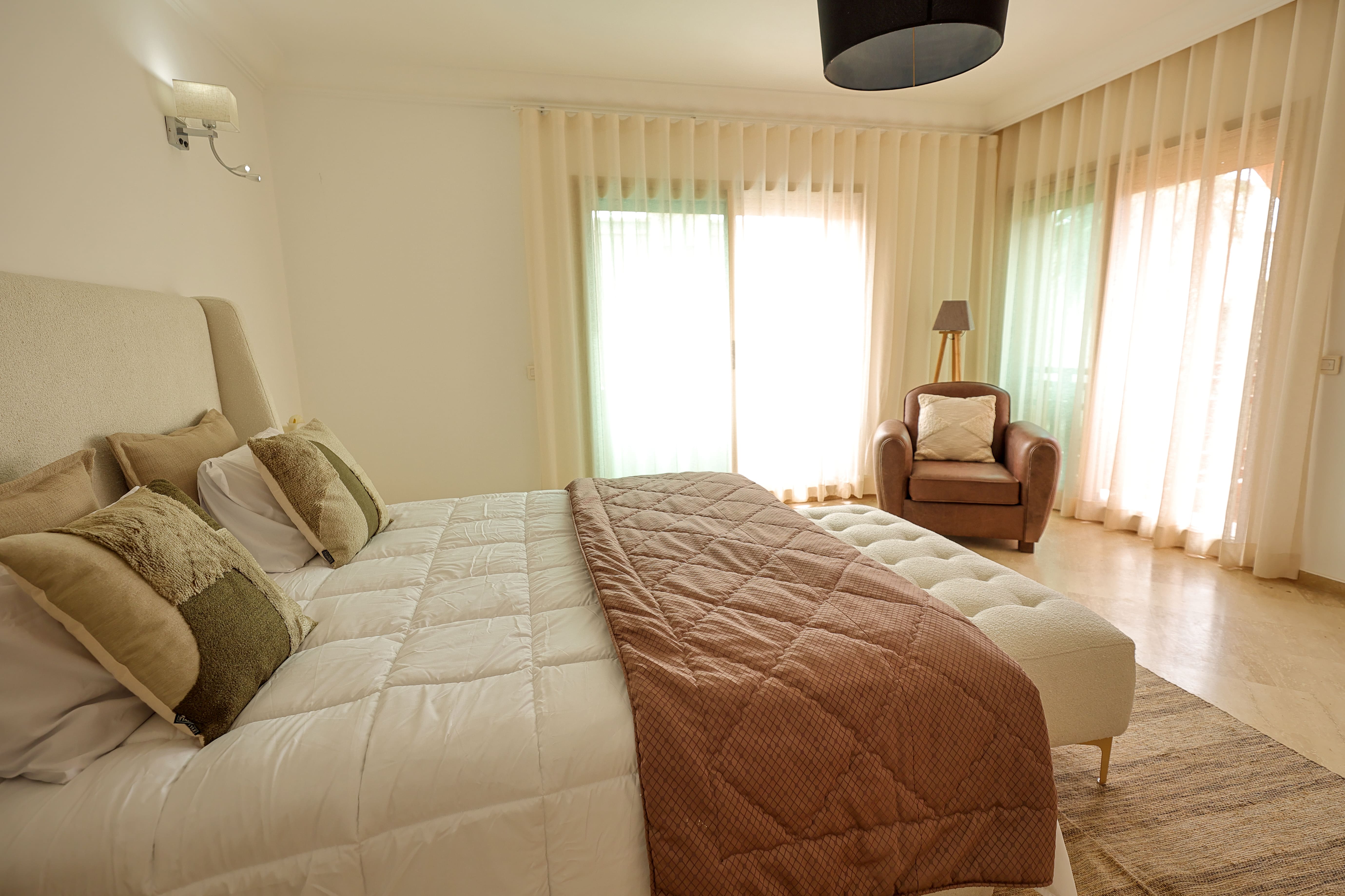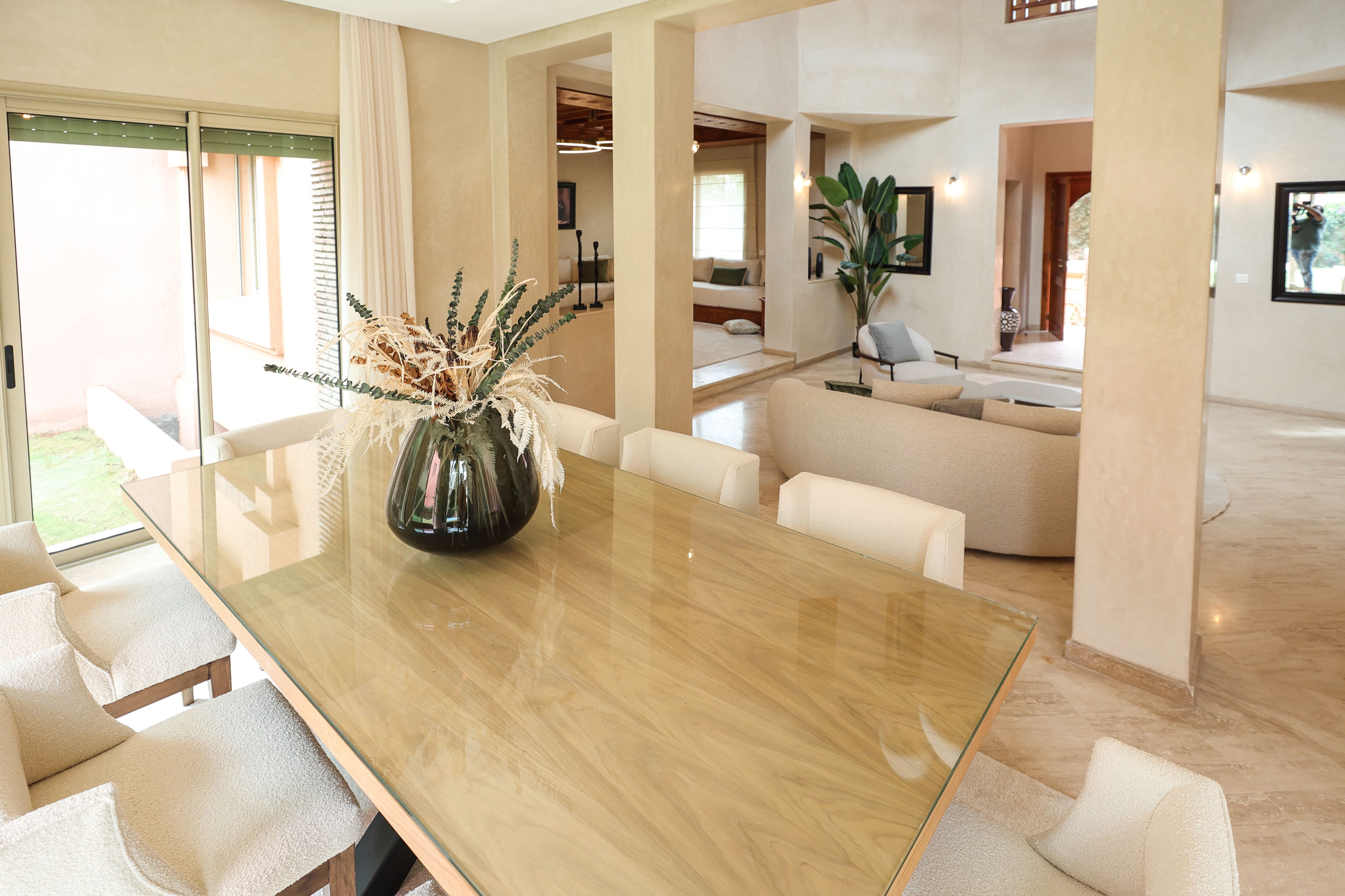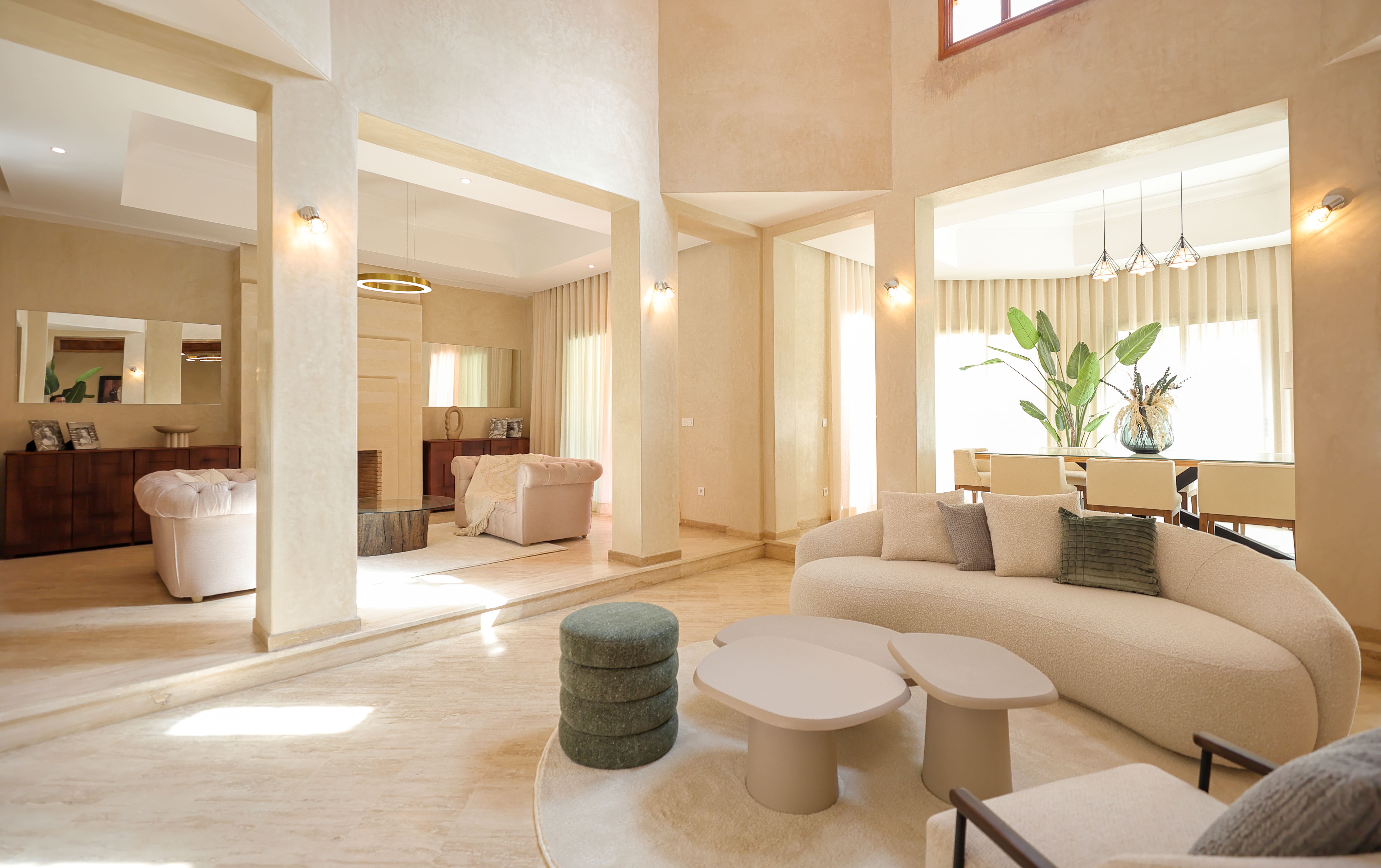 - Matériaux nobles et finitions haut de gamme : Marbre, tadelakt, zellige et moucharabieh décorent chaque villa, reflétant le patrimoine artisanal marocain.